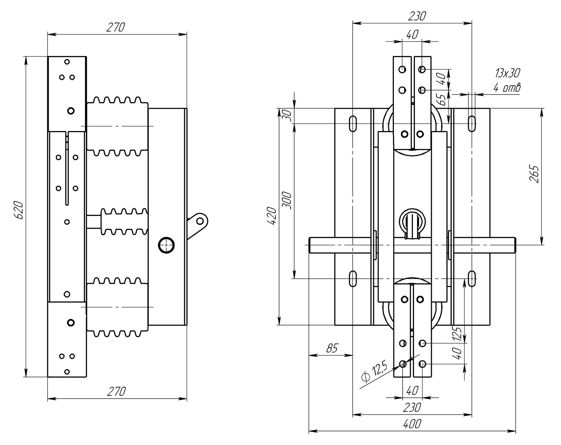 Разъединитель двухполюсный без заземляющих ножей