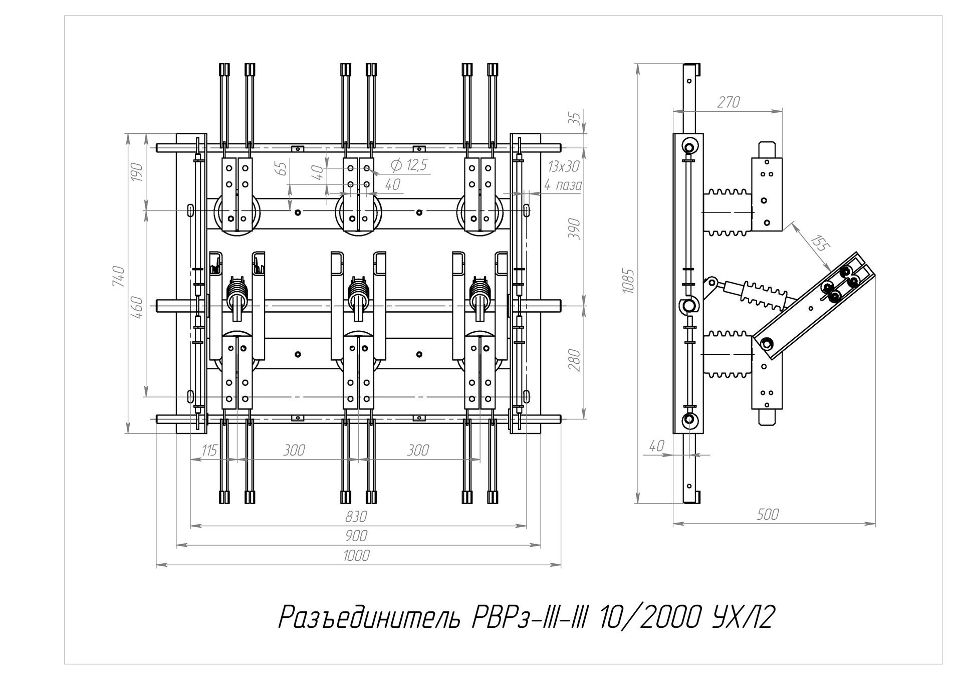 Разъединитель – электрический аппарат с видимым местом разъединения электрической цепи в воздухе, предназначен для включения и отключения под напряжением участков электрической цепи высокого напряжения при отсутствии нагрузочного тока.