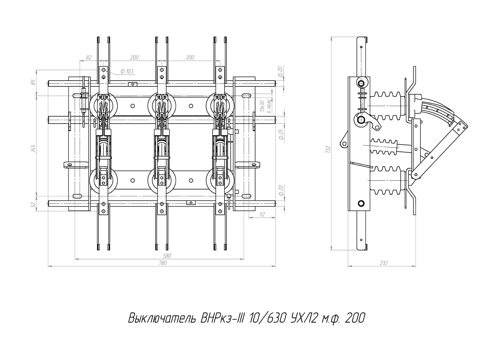 Выключатель производится с межфазным расстоянием 250 мм.(стандарт) и 200 мм. по запросу.