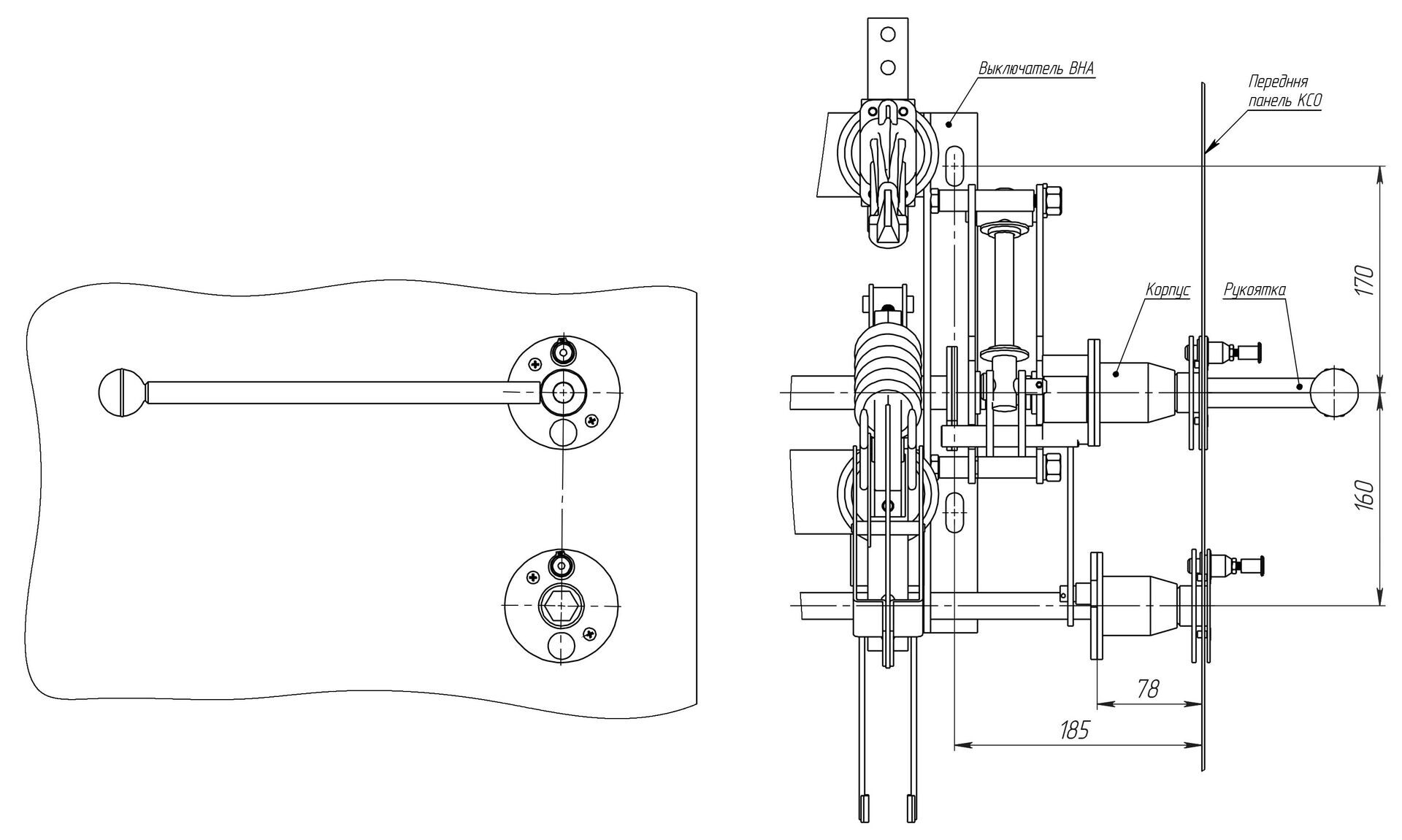 Для уверенной работы привода необходимо чтобы ось вала выключателя находилась выше оси вращения секторов привода на 50-100 мм.
