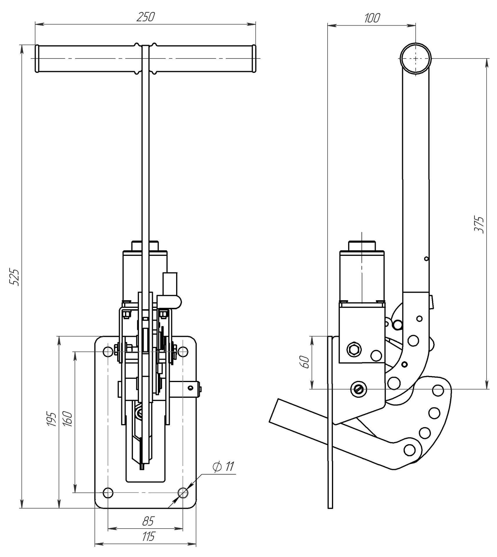 Положение рычага привода вертикально вниз. Этого положения добиваемся перестановкой рычага в отверстиях секторов привода и вращением регулировочной шпильки.