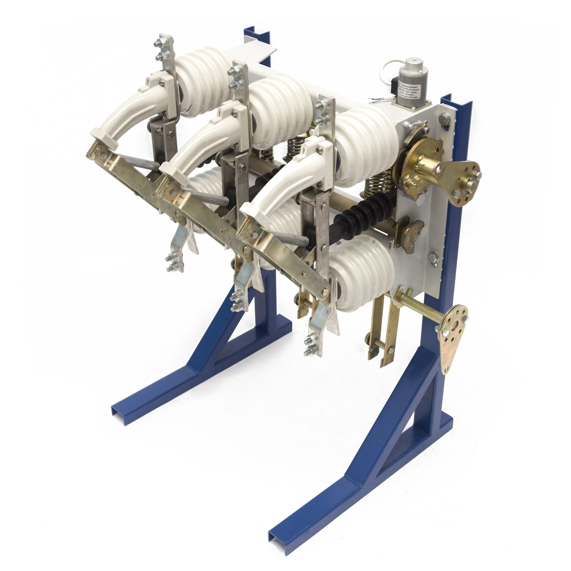 Выключатель нагрузки с дугогасительными камерами из полиметилметакрилата. Предназначен для отключения токовых цепей напряжением 10 кВ. под нагрузкой и защиты присоединения предохранителями серии ПТ. Гашение дуги происходит в полимерной камере за счет продуктов горения материала камеры и скорости отключения. Исполнение с заземляющими ножами или без заземляющих ножей. С заземляющими ножами возможно три исполнения. I - заземляющие ножи со стороны разъемного контакта. II - заземляющие ножи со стороны шарнирного соединения подвижного контакта. III - заземляющие ножи с двух сторон выключателя